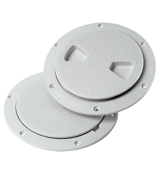 Weather-tight deck plates feature a secure screw-out center, with o-ring seal and grooved flange bottom for bedding compound retention. Perfect for use where hose or electrical connections require frequent access.